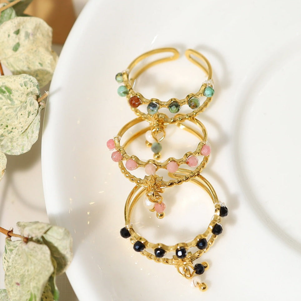 Introducing our stunning 18K Gold Stainless Steel Ethel Ring, a perfect blend of luxury and detail designed to elevate your everyday style. Crafted with precision, this ring combines delicacy with the resilience of stainless steel, ensuring it remains a treasured piece for years to come. Safe to wear in water.