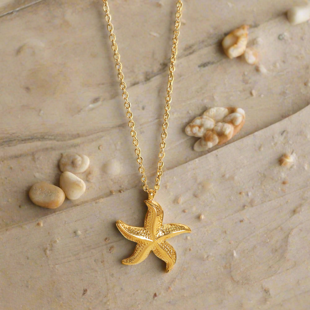Elevate your style with our gold-plated Marina Starfish pendant necklace. This stunning piece is designed to shine and resist tarnish, making it perfect for everyday wear and special occasions. Shop now to add this timeless accessory to your jewellery collection.